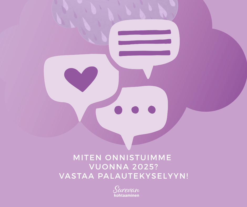 – Alaikäisenä sain kriisiapua perheneuvolan kautta. Nuorena aikuisena sain tukea opiskelijaterveydenhuollon kautta ja viisi vuotta psykoterapiaa. Olen myös saanut tukea työterveydestä ja mielenterveyspäivystyksen kautta. Suurin ja tärkein tuki itselleni on ollut Huoma ry – Henkirikoksen uhrien läheiset, jossa olen päässyt tapaamaan kaltaisiani. Siksi korostan vertaistuen merkitystä – se on elintärkeää. Minua on auttanut myös kokemusasiantuntijaksi kouluttautuminen Surevan kohtaamisen kautta, koska pääsen puhumaan kokemuksestani ja sitä kautta koen, että voin tehdä jotakin merkityksellistä muiden ihmisten hyväksi ja samalla pitää kokemukseni mukana elämässäni, kertoo Meiju saamastaan tuesta.